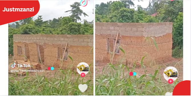 The viral clip circulating on TikTok shows the man standing at the site, visibly disappointed by what had been constructed. The structure, which appears unfinished and built with basic materials, has sparked widespread reactions online.
